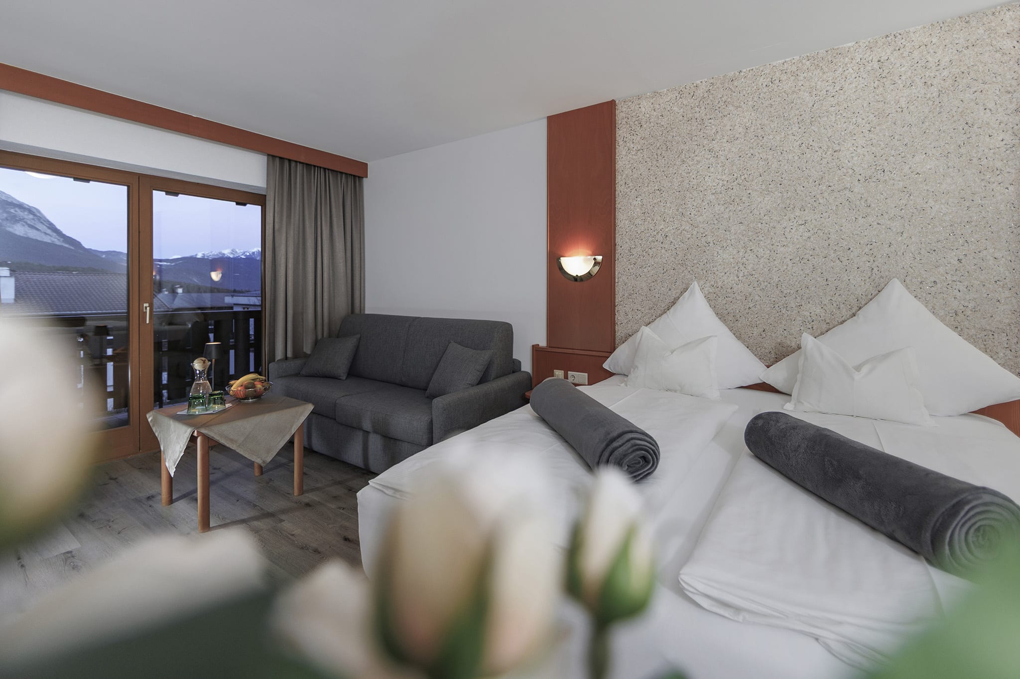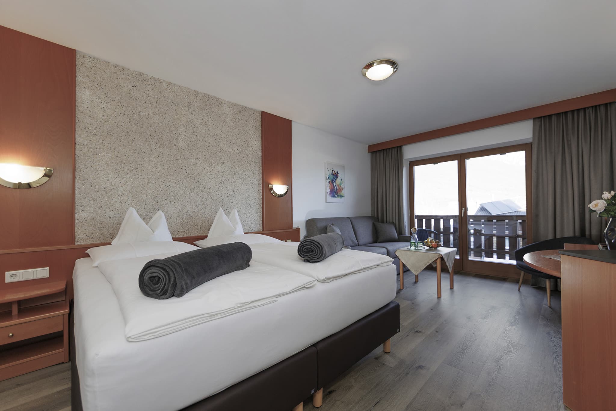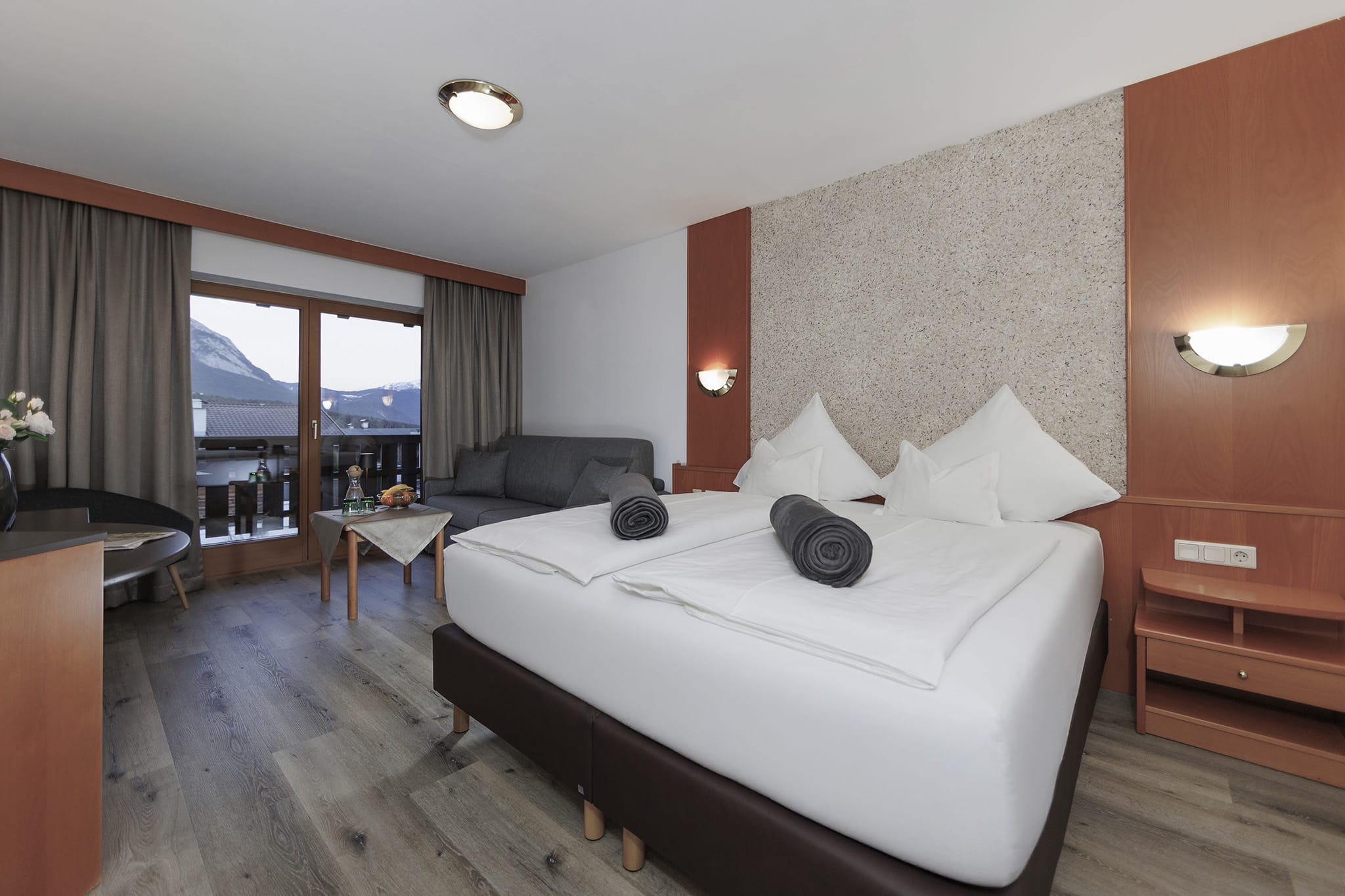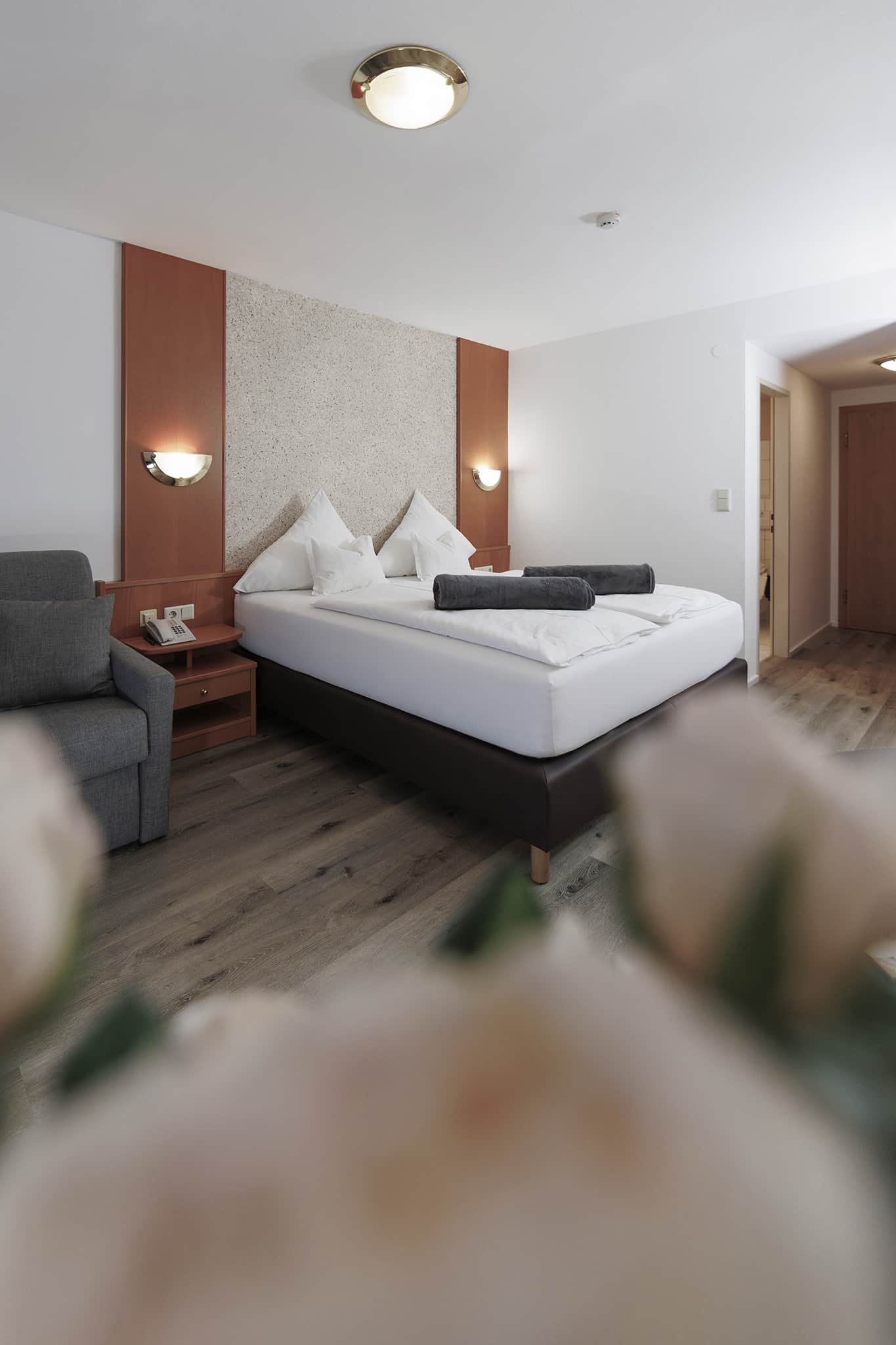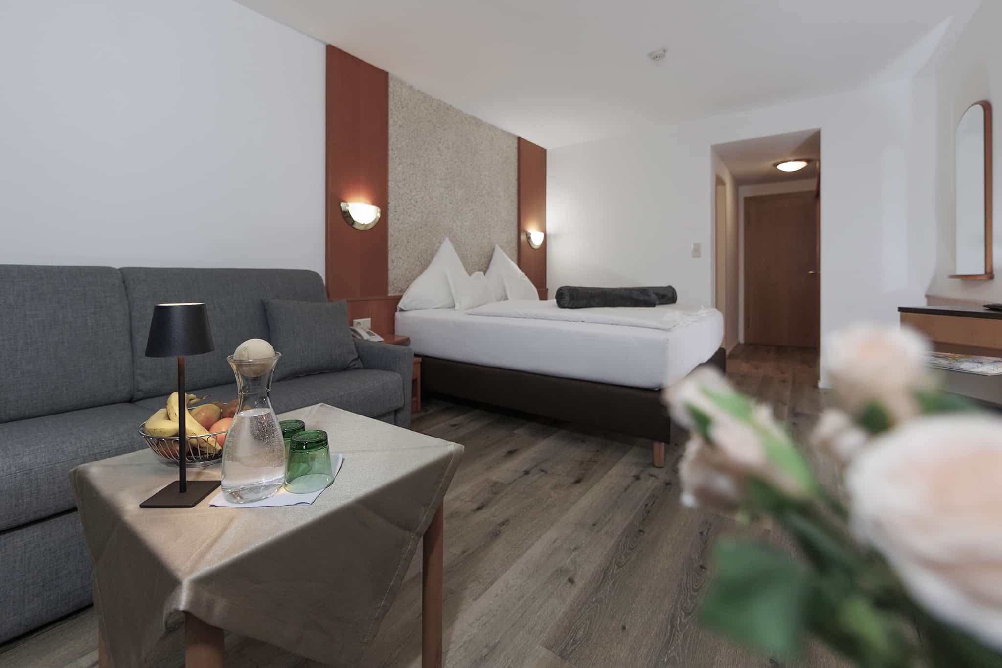 Unser Doppelzimmer bietet einen zurückhaltenden Wohnkomfort, der das Wesentliche in den Vordergrund rückt: die Natur, die majestätischen Berge und eine Atmosphäre der Gemütlichkeit. Hier vereinen sich Holz und Möbelstücke zu einem behaglichen Ambiente, das Sie vom ersten Moment an willkommen heißt. Genießen Sie Ihr Urlaubserlebnis im Landhotel Jäger.